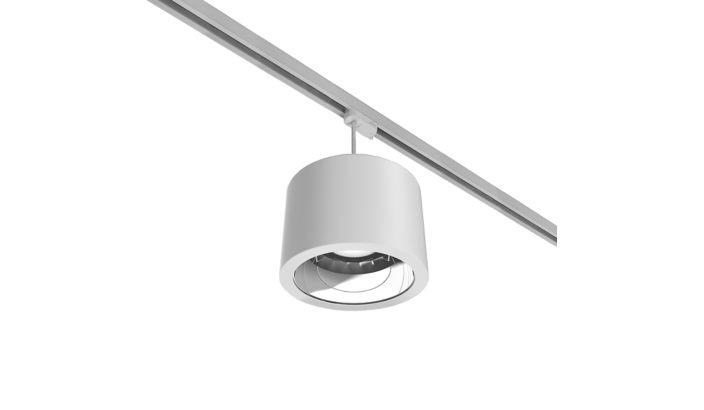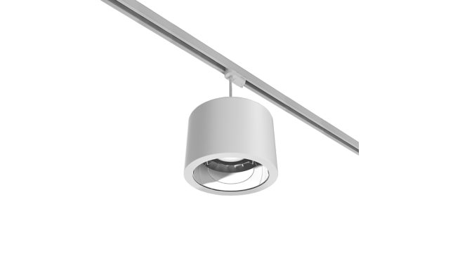 Pendant track-mounted, D218 mm, Polykarbonaatti, Valkoinen, Ripustus, Kisko, Ei-säädettävä liitäntälaite (on/off), 2181 lm, 16.5 W, 132 lm/W, 4000 K, (0.43, 0.40) SDCM < 5, Keilakulma 90°, Korkeakiiltoinen heijastin, IP20 | Kosketussuojattu, IK02 | 0.2 J standard, Suojausluokka II, 2-napainen pistoliitin