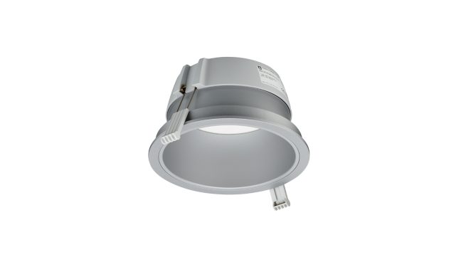 D200 mm, Muovi, Hopea, Ei-säädettävä ulkoinen liitäntälaite (on/off), 2100 lm, 18 W, 117 lm/W, 4000 K, (0.38,0.38), UGR19, Mattaheijastin, IP20 | Kosketussuojattu, IK03 | 0.3 J, Suojausluokka II